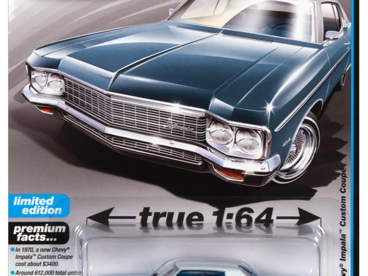 Brand : Chevrolet Model : Impala Lowrider Description : 1/64 1970 Chevrolet Impala Lowrider, Astro Blue with Flat White Vinyl