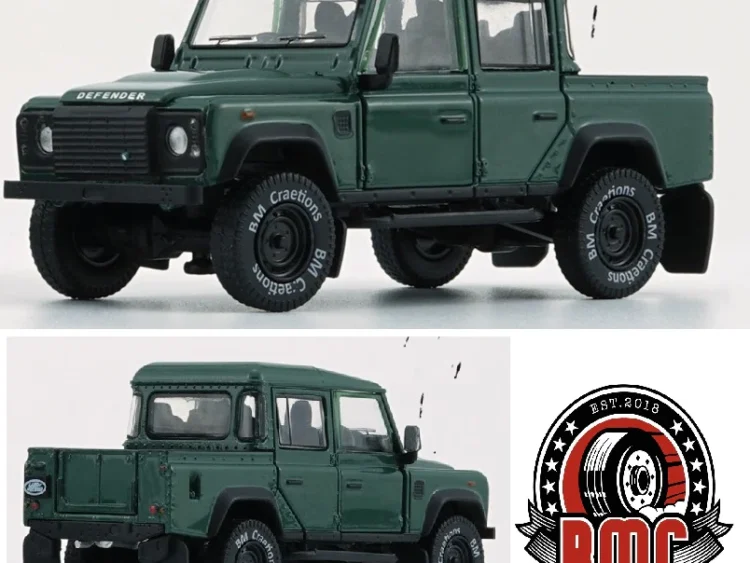 Brand : Land Rover Model : Defender 110 pick-up Description : 1/64 2016 Land Rover Defender 110 pick-up, green left