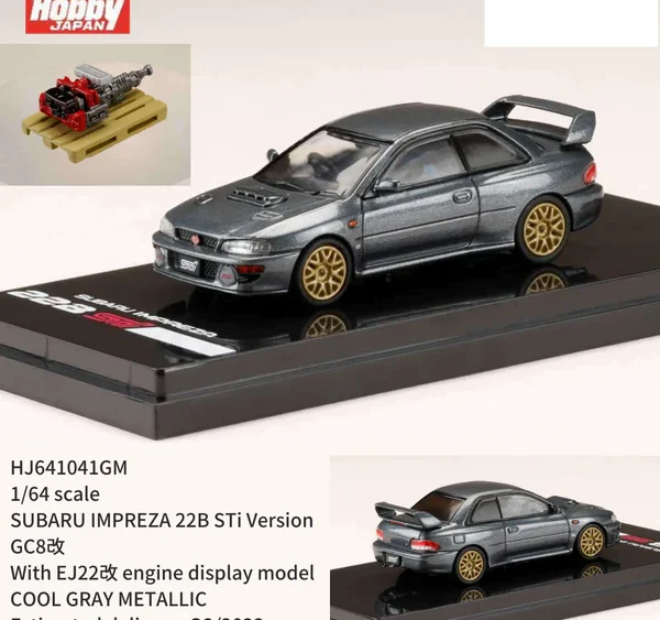 1/64 LHD Subaru Impreza 22B STi Version (GC8) With EJ22 Engine Display Model, cool grey metallic