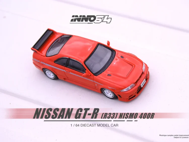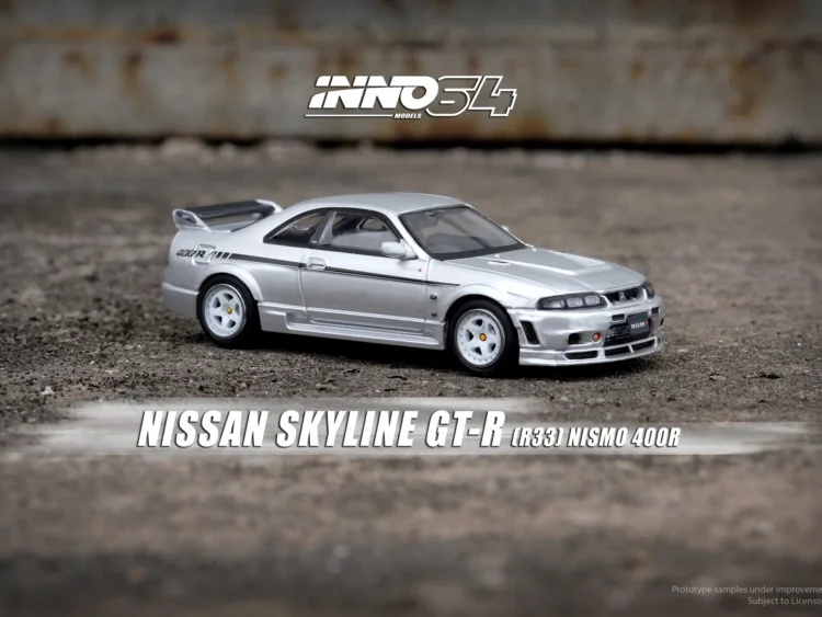 Brand : Nissan Model : Skyline Description : 1/64 Nissan Skyline GT-R (R33) Nismo 400R, sonic silver Manufacturer : Inno
