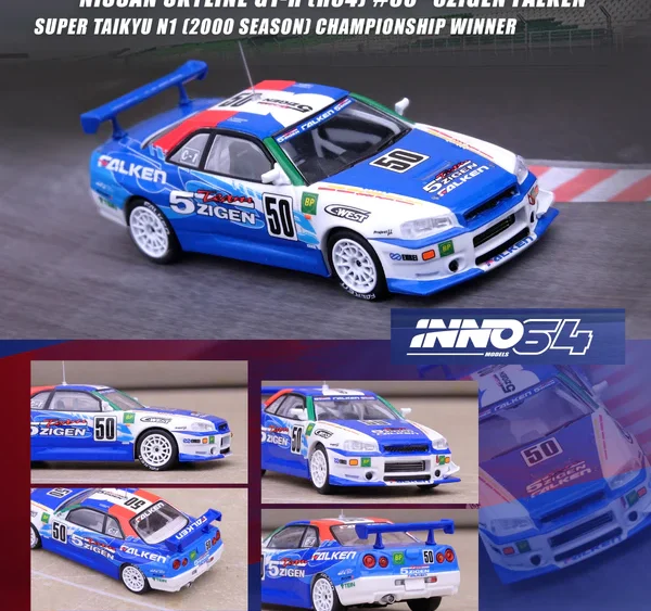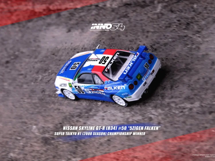 Brand : Nissan Model : Skyline GT-R Description : 1/64 Nissan Skyline GT-R (R34) #50 *5Zigen Falken* Super Taikyu 2000