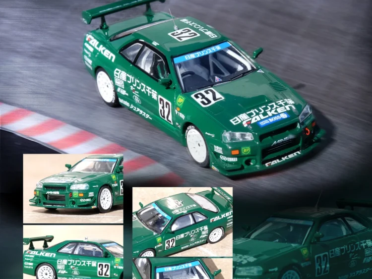 Brand : Nissan Model : Skyline GT-R Description : 1/64 Nissan Skyline GT-R (R34) #32 *Prince Chiba Falken* Super Taikyu