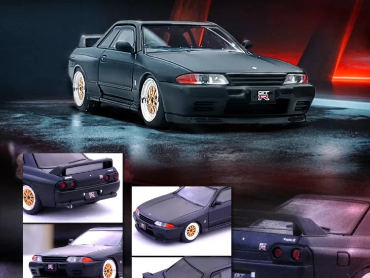 Brand : Nissan Model : Skyline GT-R R32 Description : 1/64 Nissan Skyline GT-R (R32), matt black Manufacturer : Inno