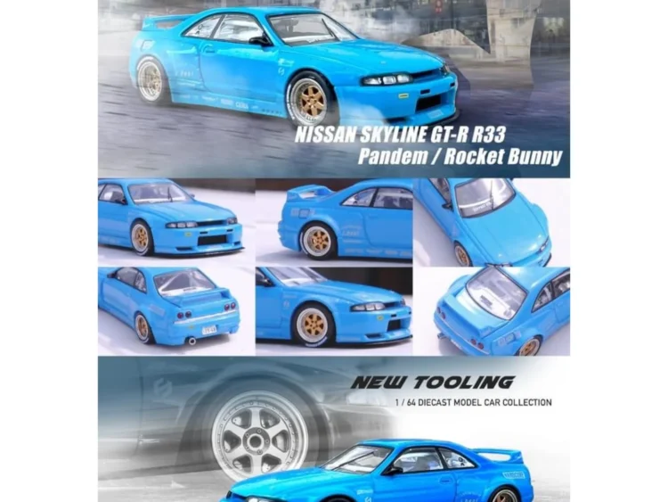 Brand : Nissan Model : Skyline GT-R R33 Pandem Description : 1/64 Nissan Skyline GT-R (R33) Pandem Rocket Bunny, blue