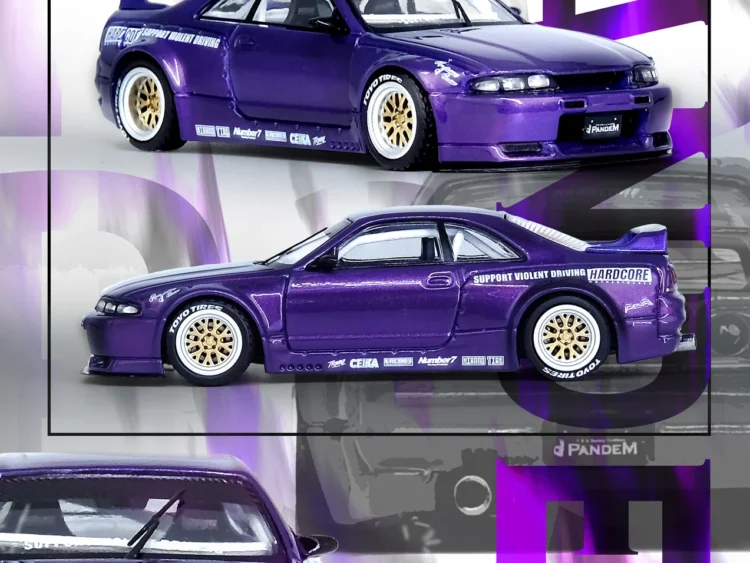 Brand : Nissan Model : Skyline GT-R (R33) Description : 1/64 Nissan Skyline GT-R (R33) *Pandem Rocket Bunny*, purple Manufacturer