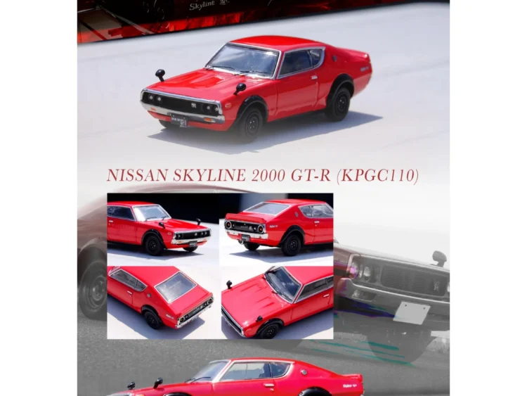 Brand : Nissan Model : Skyline 2000 GT-R KPGC110 Description : 1/64 Nissan Skyline 2000 GT-R (KPGC110), red Manufacturer :