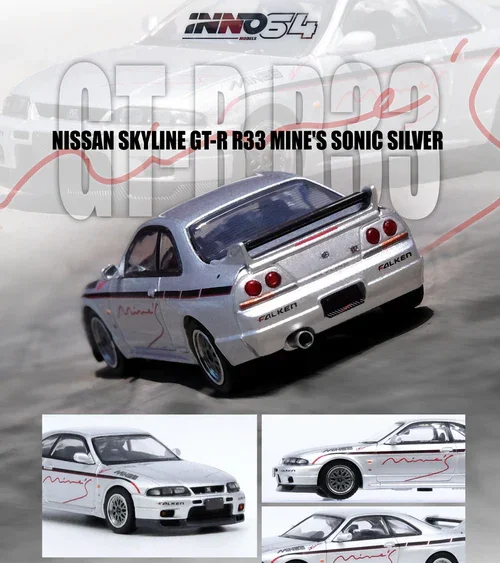 Brand : Nissan Model : GR-R (R33) Description : 1/64 Nissan GR-R (R33) *Tuned by Mine`s*, silver Manufacturer : Inno