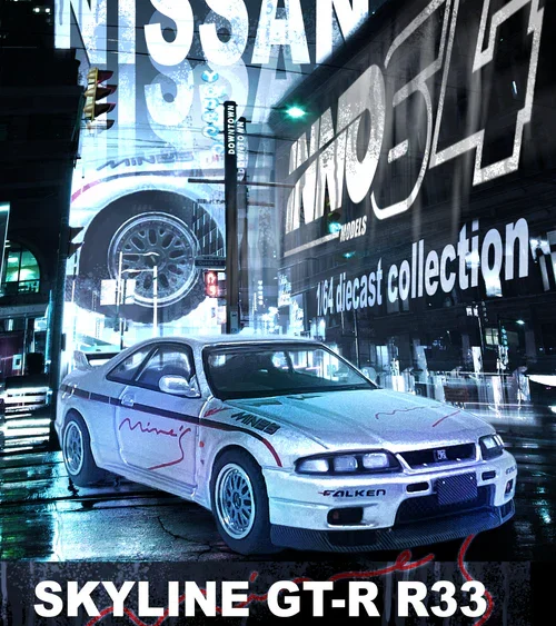 Brand : Nissan Model : Skyline GT-R R33 Description : 1/64 Nissan Skyline GT-R R33 #32 *Prince Chiba Falken* N1