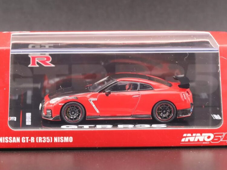 Brand : Nissan Model : GT-R (R35) Nismo Description : 1/64 Nissan GT-R (R35) NISMO, red Manufacturer : Inno Models