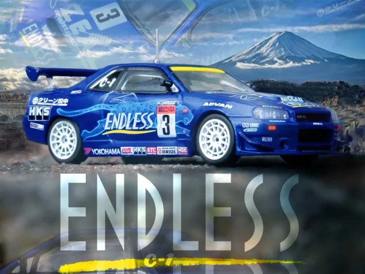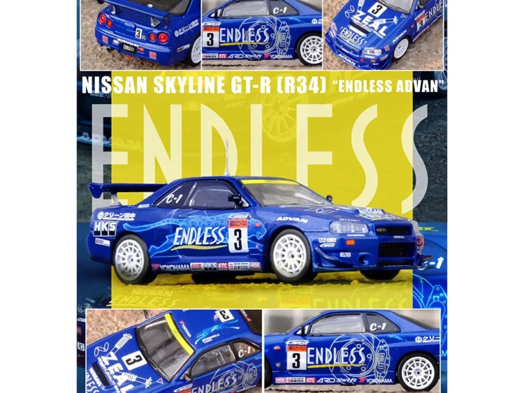 Brand : Nissan Model : Skyline GT-R (R34) Description : 1/64 Nissan Skyline GT-R (R34) #3 *Endless Advan* Super Taikyu