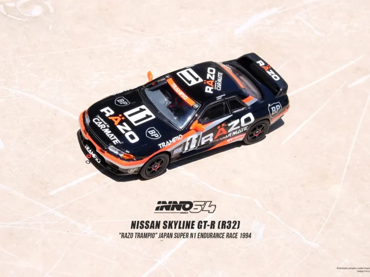 Brand : Nissan Model : Skyline GT-R R33 Description : 1/64 Nissan Skyline GT-R R33 #11 *Razo Trampio* N1 Super