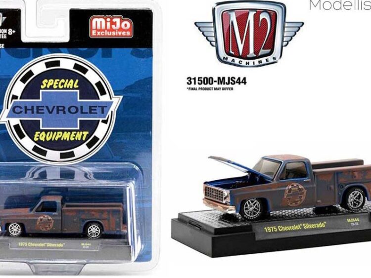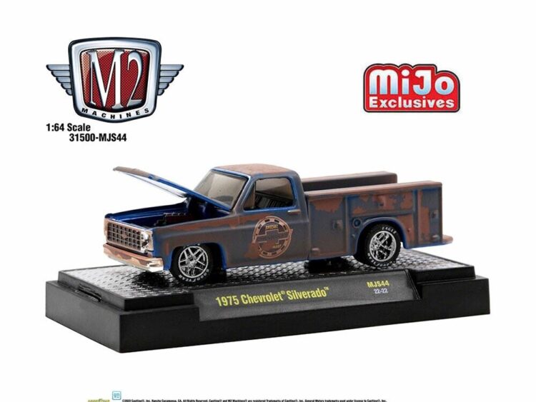 Brand : Chevrolet Model : Silverado Description : 1/64 1975 Chevrolet Silverado, blue/weathered Manufacturer : M2 Machines Scale : 1/64