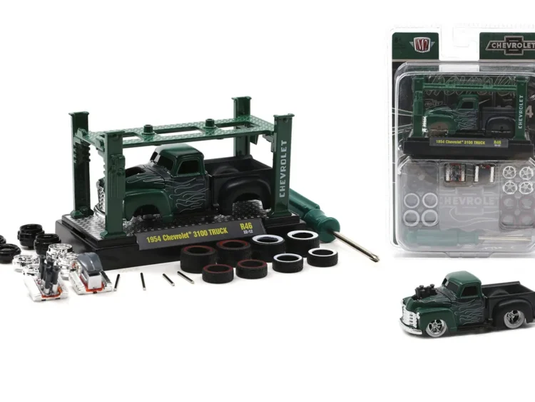 M2 Machines 37000-R46-22-12 Chevrolet 3100 Truck Green/Black Flames – Model Kit