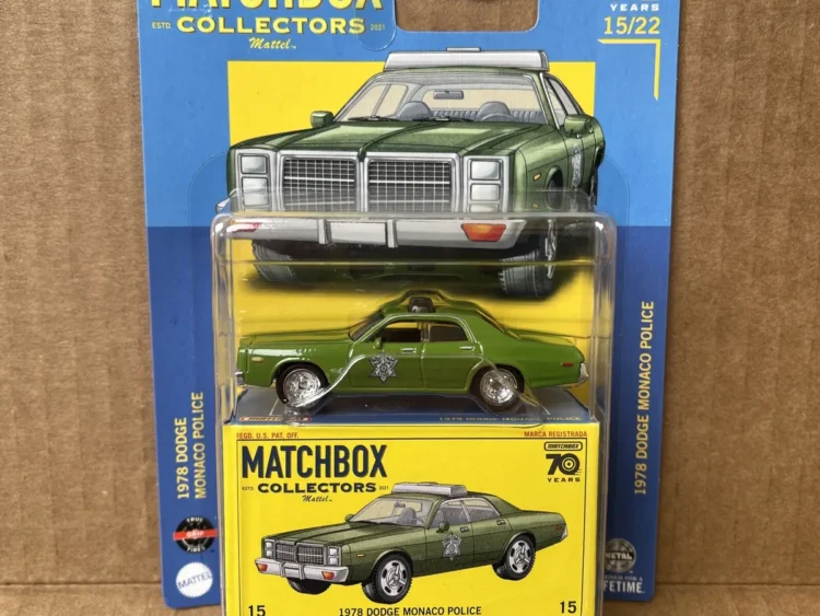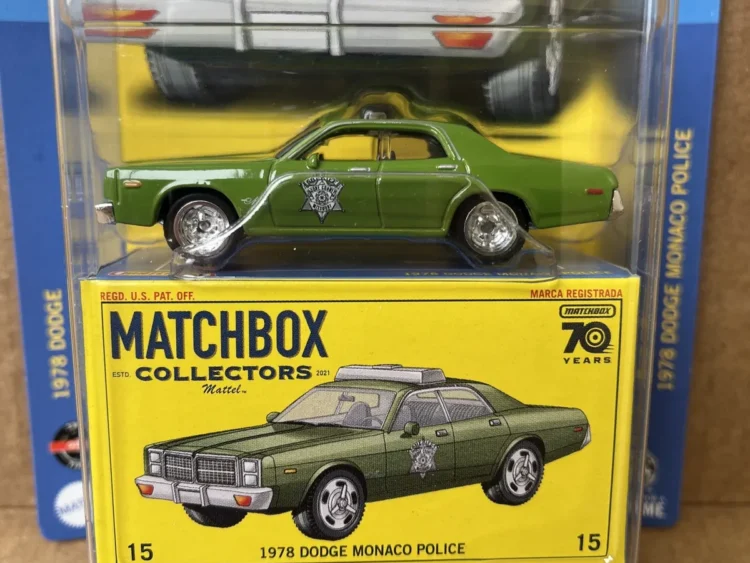 Brand : Dodge Model : Monaco Description : 1/64 1978 Dodge Monaco Police *70th Anniversary*, green Manufacturer : Matchbox Scale