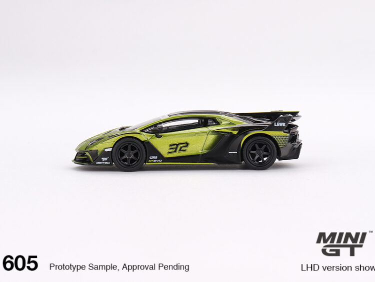 Brand : Lamborghini Model : LB-Silhouette Description : 1/64 Lamborghini LB-Silhouette Works Aventador GT EVO, lime Manufacturer : Mini GT