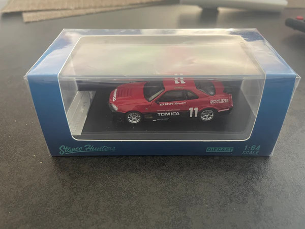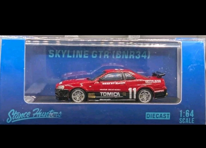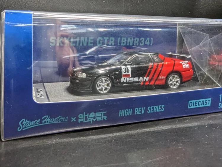 Brand : Nissan Model : R34 Description : 1/64 Nissan R34 *Advan*, black/red Manufacturer : Stance Hunter Scale : 1/64