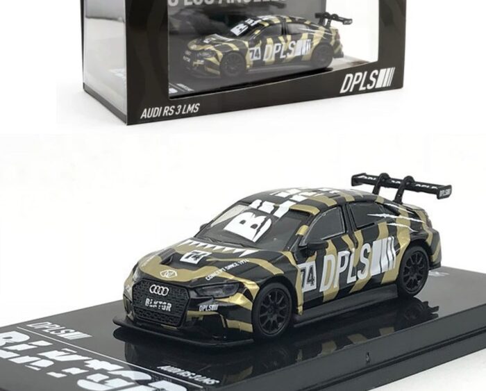 Brand : Audi Model : RS3 LMS Description : 1/64 Audi RS3 LMS #74 DC169A-BLK, black/gold/white Manufacturer : Tarmac Category