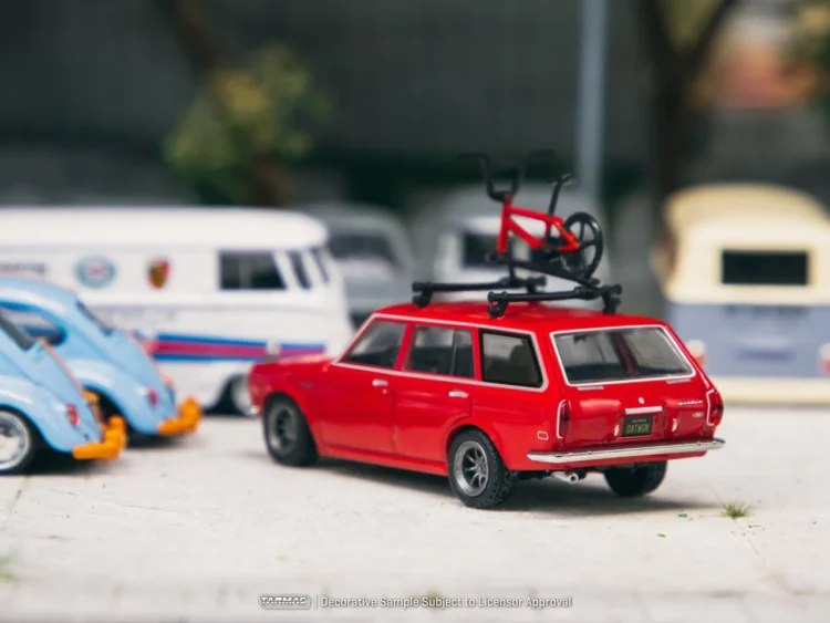 Brand : Datsun Model : 510 Wagon & Surfboard Description : 1/64 Datsun 510 Wagon with Surfboard, black/red Manufacturer :