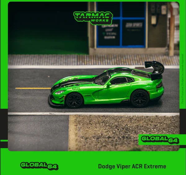 Brand : Dodge Model : Viper Description : 1/64 Dodge Viper ACR Extreme, green Manufacturer : Tarmac Category : Street