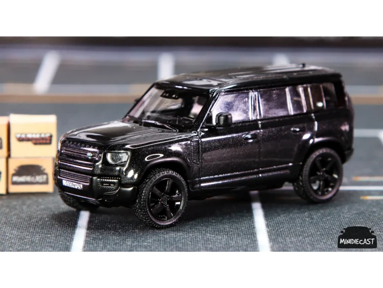 Brand : Land Rover Model : Defender 110 Description : 1/64 Land Rover Defender 110, black metallic Manufacturer : Tarmac