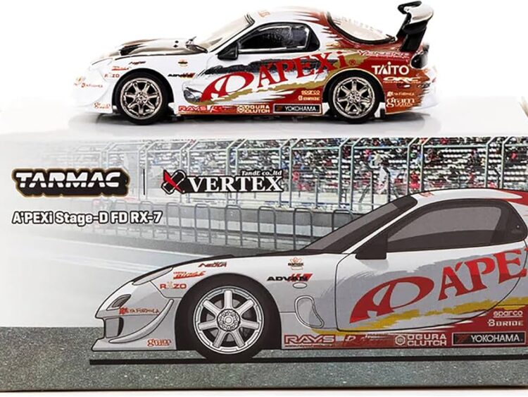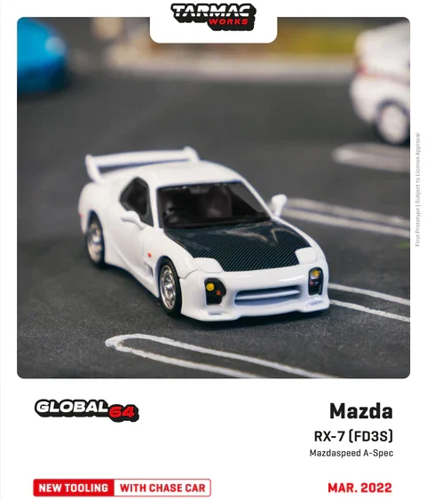 Brand : Mazda Model : Apexi Description : 1/64 Mazda Apexi Stage D FD RX-7, white/red Manufacturer : Tarmac Scale