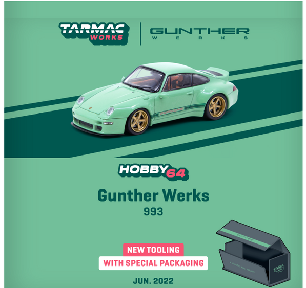 Brand : Porsche Model : Gunther Werks 993 Description : 1/64 Porsche Gunther Werks 993, green Manufacturer : Tarmac Scale
