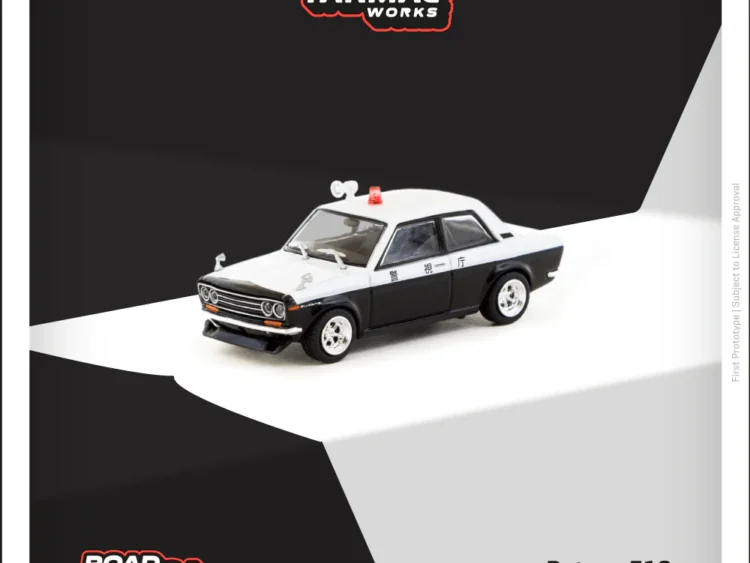 Brand : Datsun Model : 510 Description : 1/64 Datsun 510 *Police Car*, white/black Manufacturer : Tarmac Category : Street