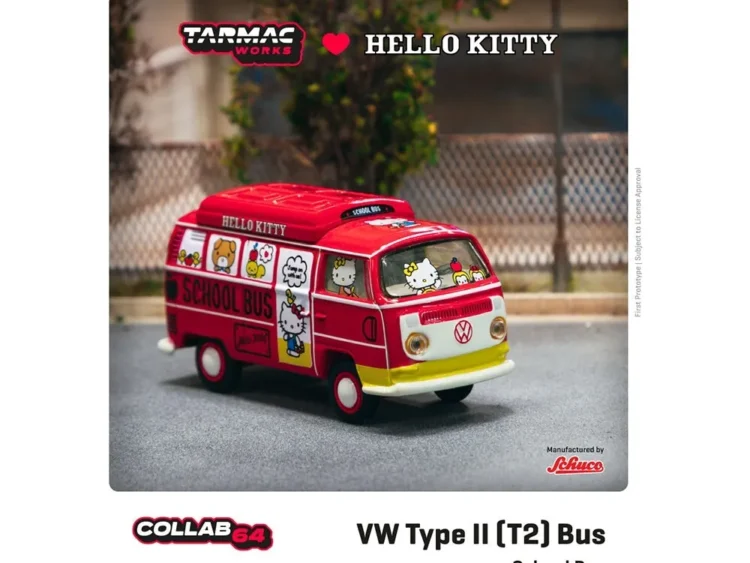 Brand : Volkswagen Model : T2 School Bus Description : 1/64 Volkswagen Type II School bus *Hello Kitty*, red/white/yellow Manufacturer