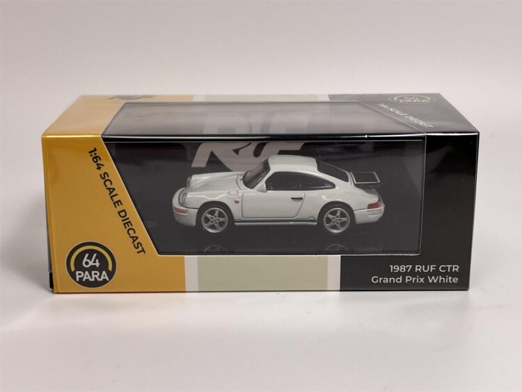 Brand: RUF Model: CTR Description: 1987 RUF CTR *Left hand drive*, white Manufacturer: Para64 Scale: 1/64 Build: 1987 Colour: white
