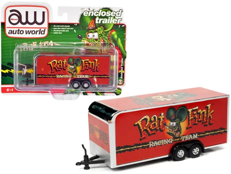 Brand : Trailer Model : Rat Fink Description : 1/64 Enclosed Trailer *Rat Fink*, red Manufacturer : Auto World Scale