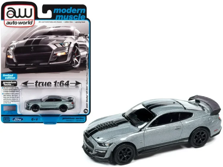 Brand : Shelby Model : GT500 Carbon Edition Description : 1/64 2021 Shelby GT500 Carbon Edition, Iconic Silver with Twin
