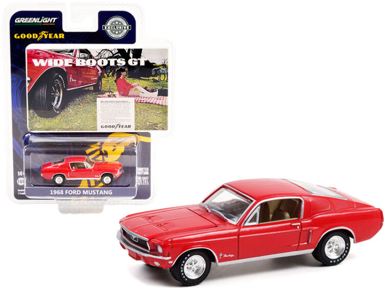 1968 Ford Mustang Red "Wide Boots GT" Goodyear Vintage Ad Cars 1/64 Diecast Model Car by Greenlight