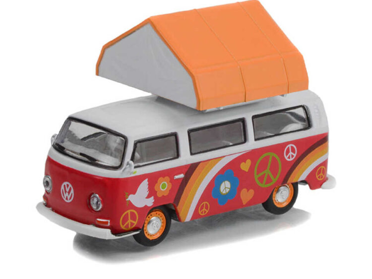 Brand : Volkswagen Model : Type 2 Description : 1/64 1968 Volkswagen Type 2 *Peace and Love* with Campotel Cartop