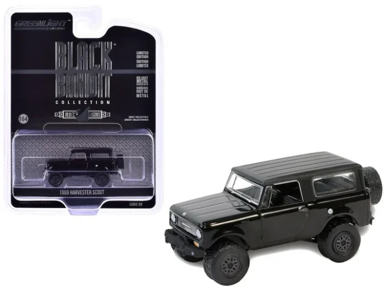Model : Harvester Scout Description : 1/64 1969 Harvester Scout Lifted *Black Bandit Series 29*, black Manufacturer : GreenLight Scale