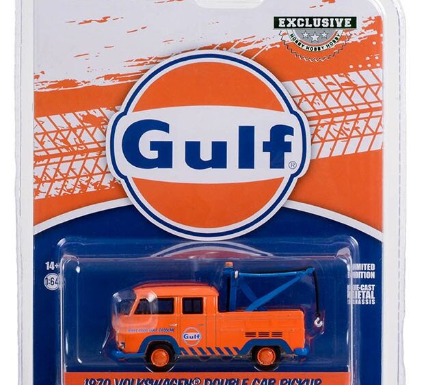 1970 Volkswagen Double Cab Pickup With Drop in Tow Hook Gulf Oil *That Good Gulf Gasoline*, orange/blue
