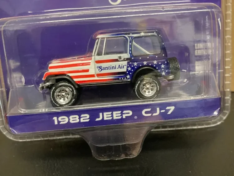 Brand : Jeep Model : CJ-7 Description : 1982 Jeep CJ-7 *Santini Air*, white/red/blue Manufacturer : GreenLight Scale : 1/64