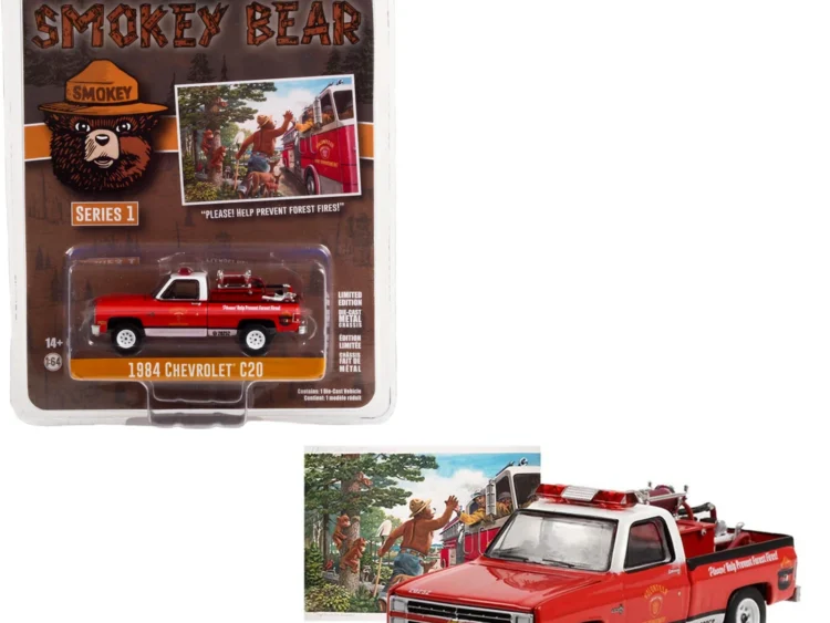 1984 Chevrolet C20 Custom Deluxe with Fire Equipment Hose and Tank *Please! Help Prevent Forest Fires!* Smokey Bear Series 1, red