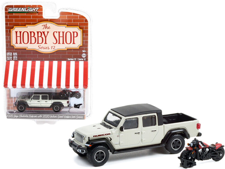 Greenlight Collectible 2020 Gladiator Rubicon Pickup Truck Beige & 2020 Scout Bobber Icon Series Motorcycle Red The Hobby Shop 1/64 Diecast Model Car by Greenlight 97120 F