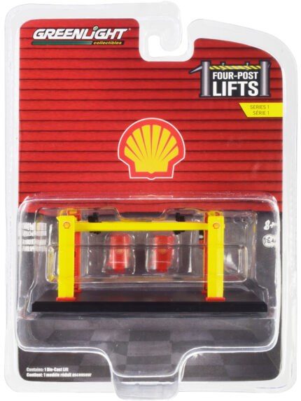 Brand : Accessoires diorama Description : 1/64 Shell Oil *Four-Post Lift Series 1* Auto Body Shop, yellow/red Manufacturer : GreenLight