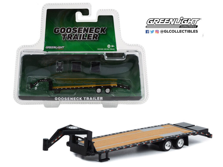 Brand : Trailer Description : Gooseneck Trailer, black with red and white Conspicuity Stripes Manufacturer : GreenLight Scale : 1/64