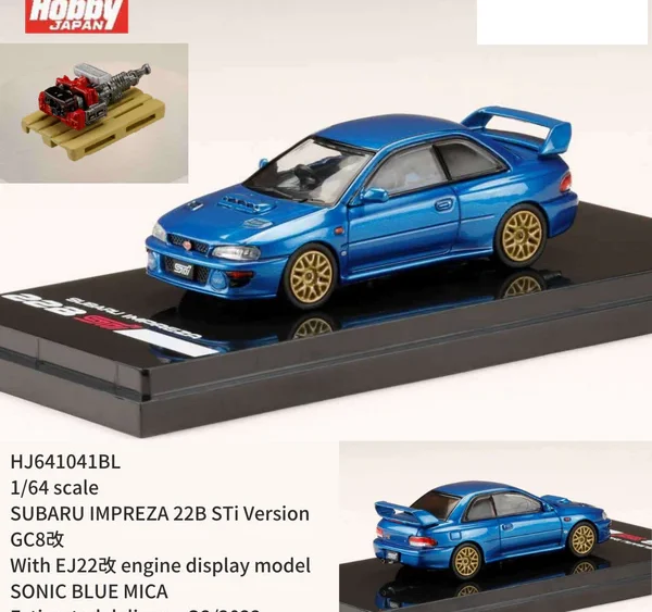 Brand : Subaru Model : Impreza Description : 1/64 1992 Subaru Impreza WRX (GC8) Costumized Version, sport blue with Engine