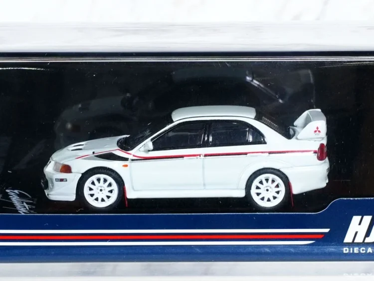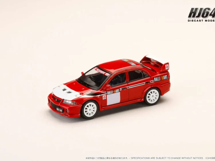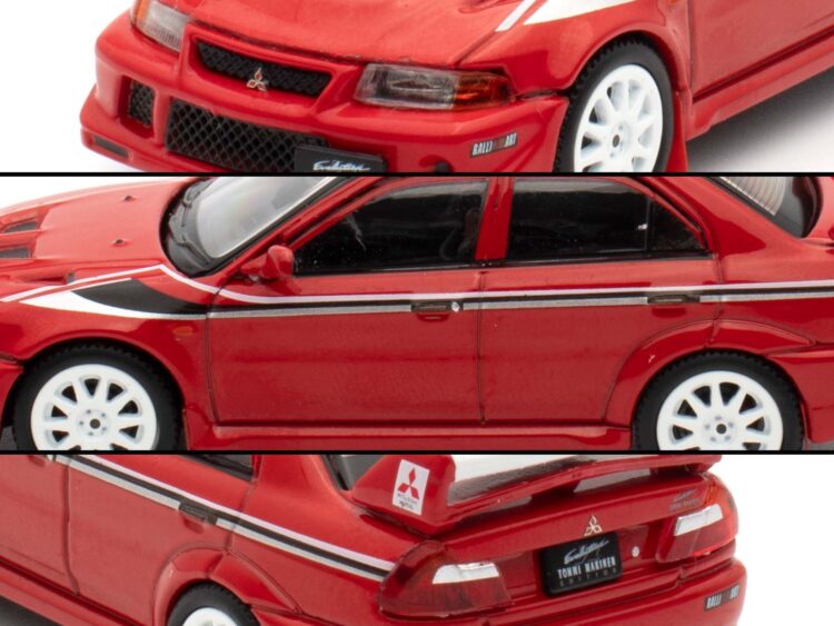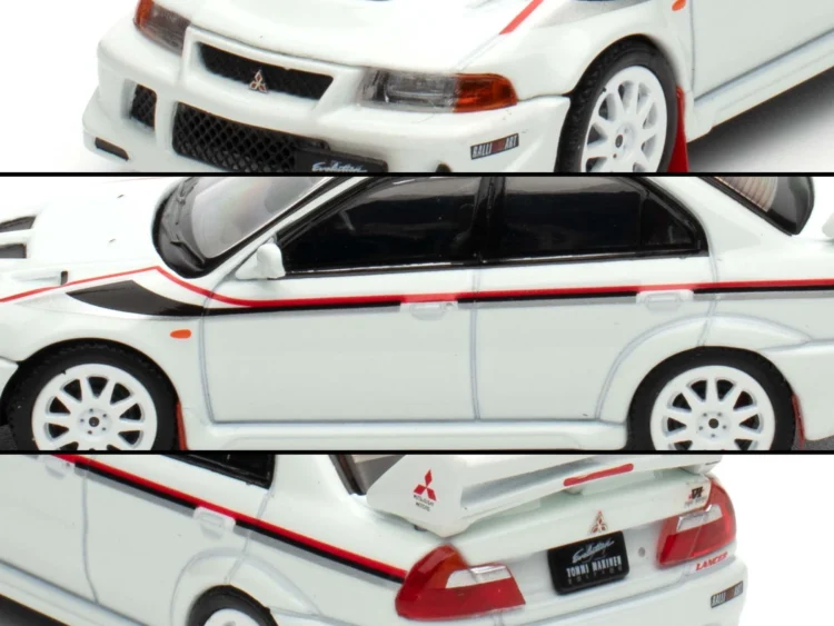 Brand : Mitsubishi Model : Lancer Description : 1/64 2000 Mitsubishi Lancer GSR Evolution 6 (CP9A) Ralliart , white/red Manufacturer