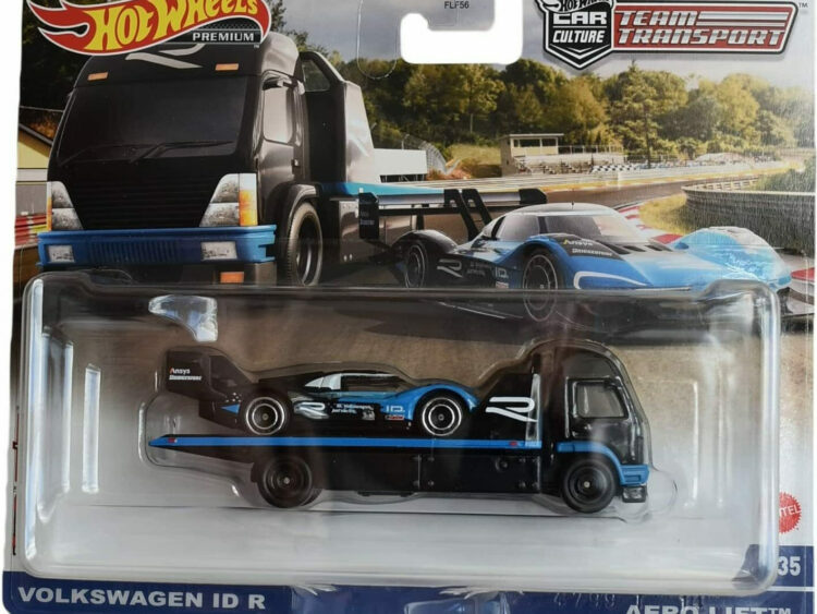 Brand : Volkswagen Model : ID R & Aero Lift Truck Description : 1/64 Volkswagen ID R & Aero Lift