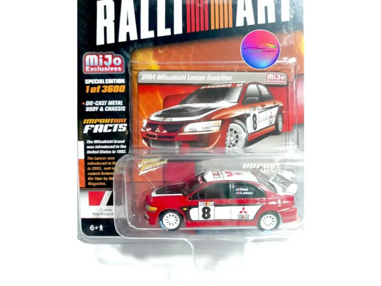 Brand : Mitsubishi Model : Lancer Description : 1/64 Mitsubishi Lancer EVO Ralliart Racing, red/white Manufacturer : Johnny Lightning Limited