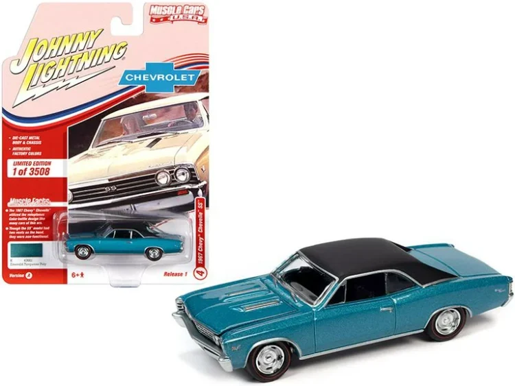 Brand : Chevrolet Model : Chevelle SS Description : 1/64 1967 Chevrolet Chevelle SS, emerald turquoise with flat black roof
