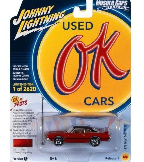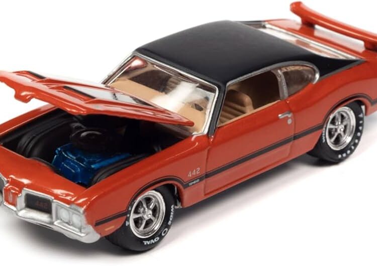 Brand : Oldsmobile Model : 442 W30 Description : 1/64 1972 Oldsmobile 442 W30, flame orange poly with flat black