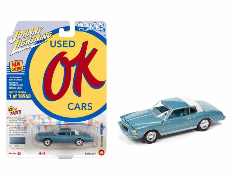 Brand : Chevrolet Description : 1/64 1978 Chevrolet Monte Carlo, blue Manufacturer : Johnny Lightning Scale : 1/64 Build :
