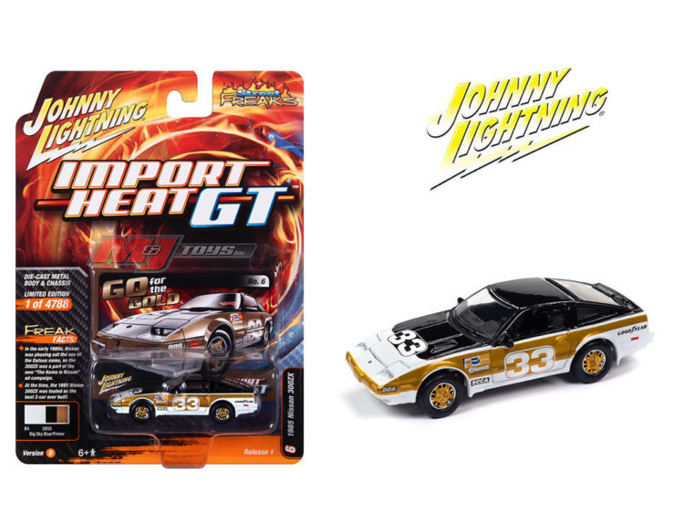 Brand : Nissan Model : 300ZX Description : 1/64 1985 Nissan 300ZX #33 *Import Heat GT*, white/gold Manufacturer : Johnny