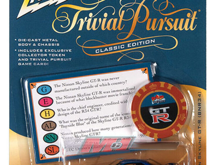 Brand : Nissan Model : Skyline GT-R BNR34 Description : 1/64 1999 Nissan Skyline GT-R BNR34 *Trivial Pursuit*, blue Manufacturer