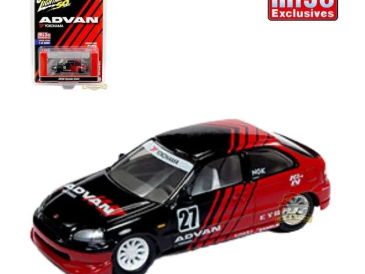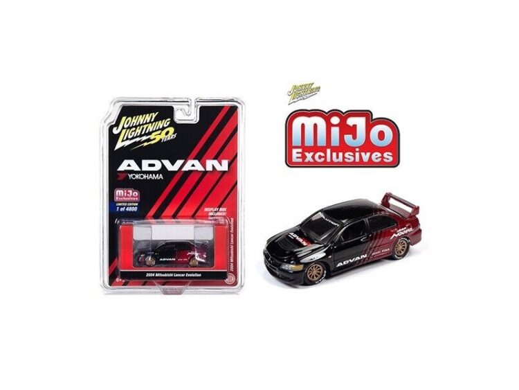 Brand : Mitsubishi Model : Lancer Description : 1/64 2004 Mitsubishi Lancer Evolution *Advan Yokohama*, red/black Manufacturer : Johnny Lightning
